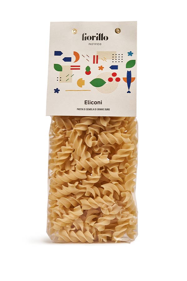 Eliconi, pasta di semola di grano duro artigianale trafilata al bronzo, lavorata artigianalmente a lenta essiccazione, ottenuta dalle migliori semole di grano duro.